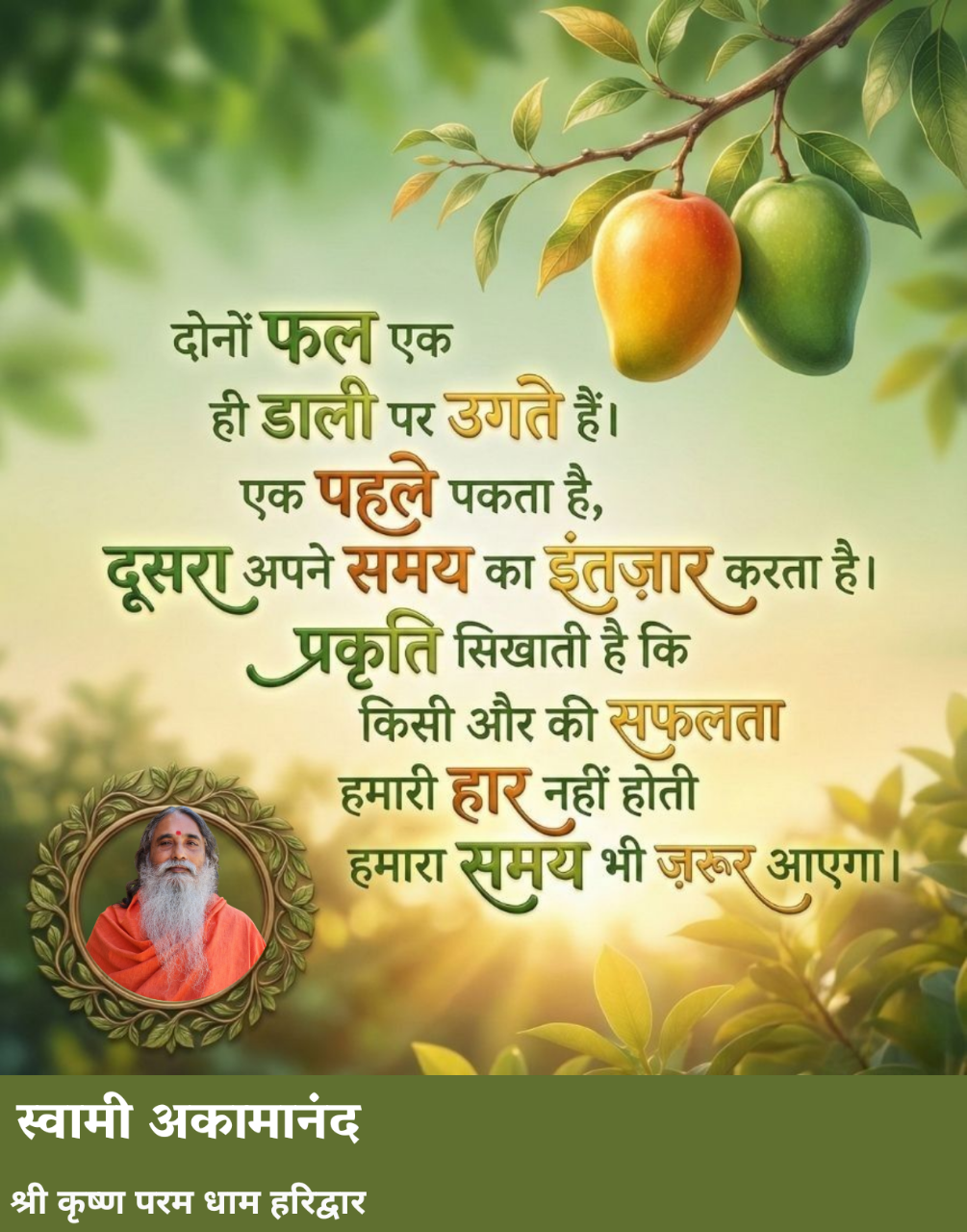 Swami Akamanand Ji believe that until a human being takes care of his basic needs, he/she cannot focus on spiritual development of mind.